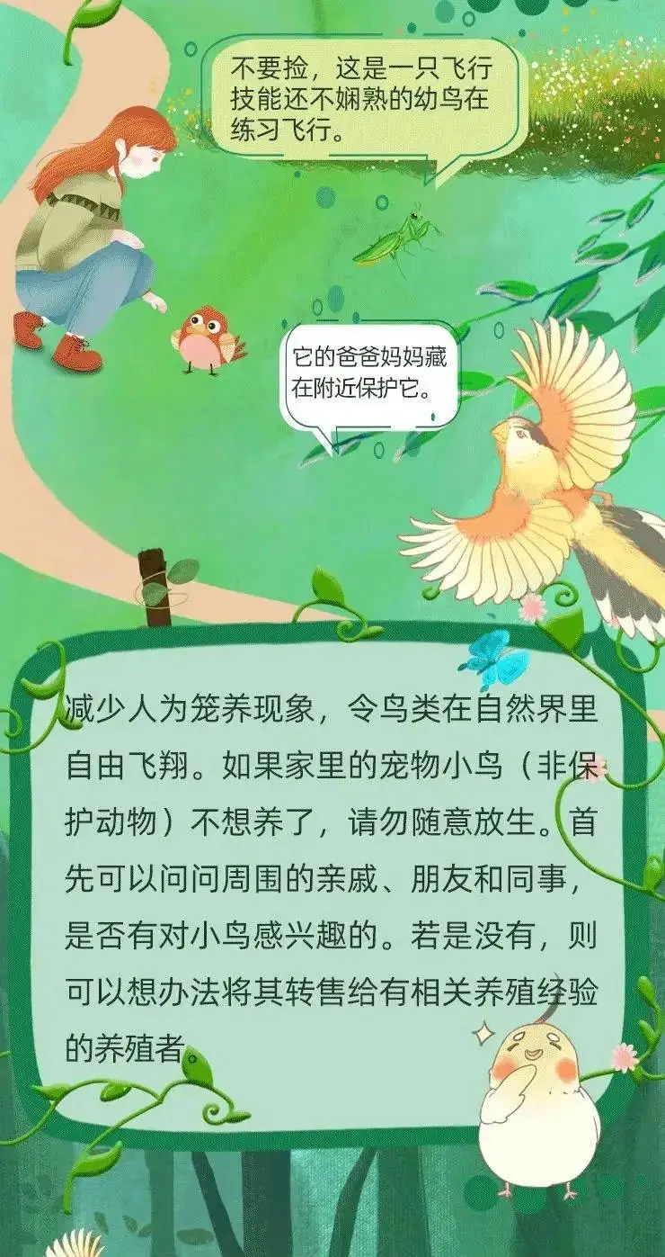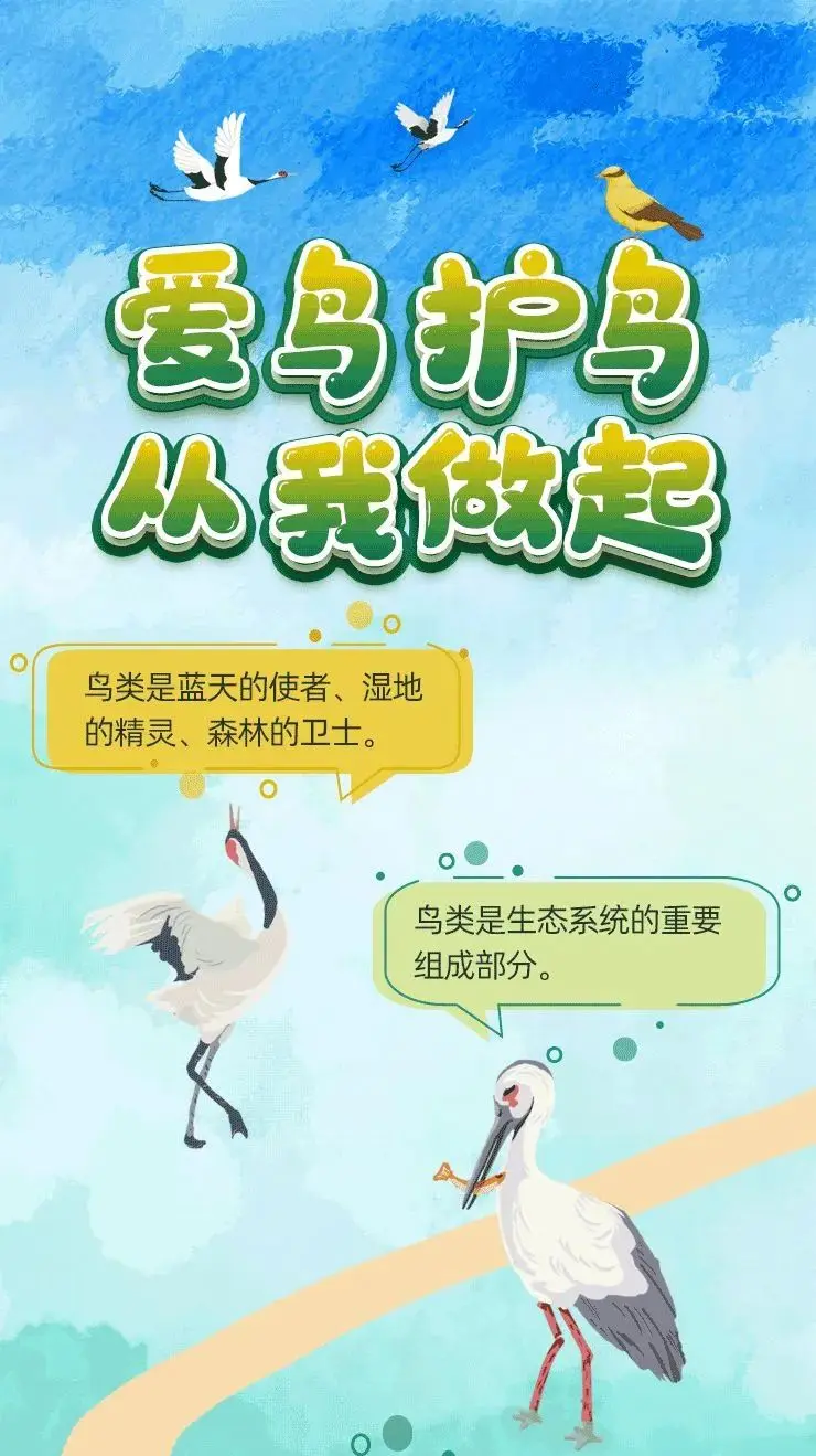 与其他野纯真物比拟,鸟类是东说念主们较为常见的“动物一又友”。学习与鸟类相处的正确神志,让爱鸟护鸟成为一种风气,从我作念起,从小事作念起,保护鸟类资源,看管绿水青山!
