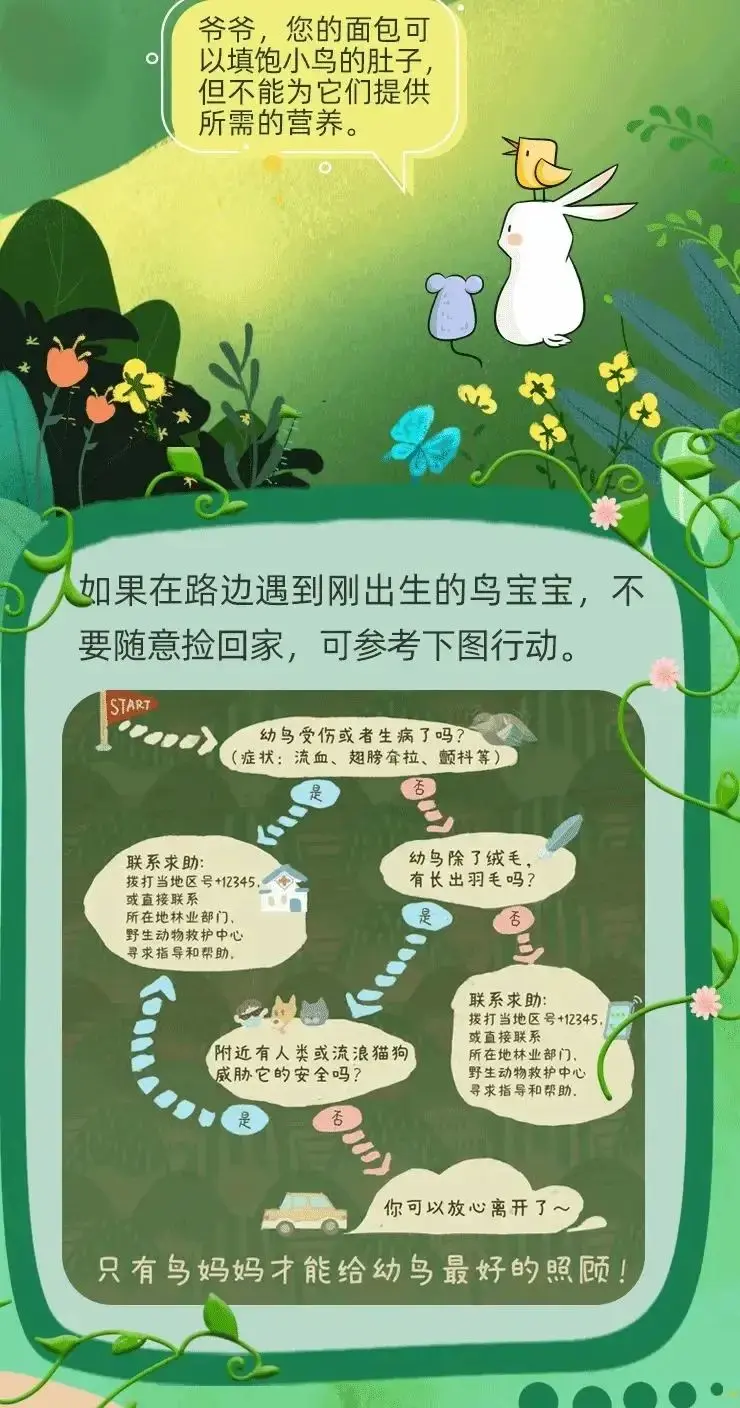 若是在路边遭逢刚出身的鸟宝宝,不要节略捡回家,澳门新浦京游戏app先不雅察鸟爸鸟妈是否在身边,如在身边,就无谓管,它们最懂得怎样管束我方的宝宝;如未发现成鸟在左近,且小鸟受伤或无法漂荡,请实时干系专科东说念主员进行救护;若是小鸟景况考究,请在保证本人安全的情况下,戴好注重手套,找到近邻的鸟巢,把小鸟放且归就好。