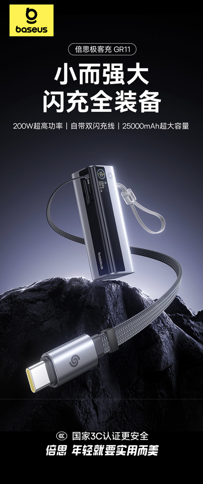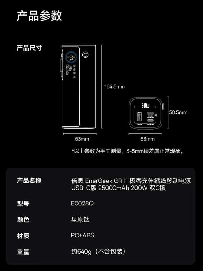 澳门新浦京app 倍念念极客充 GR11 自带双线 200W 25000mAh 转移电源首销:3C+1A,429 元